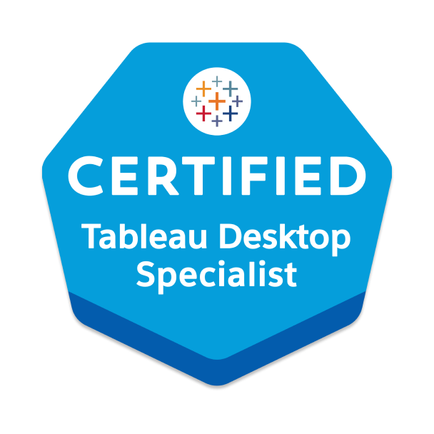 As a Tableau Certified Specialist, I don't just create dashboards; I craft experiences where precision, design, and functionality converge. This certification is your assurance of not only my skill but also my dedication to delivering the highest quality in data visualization.